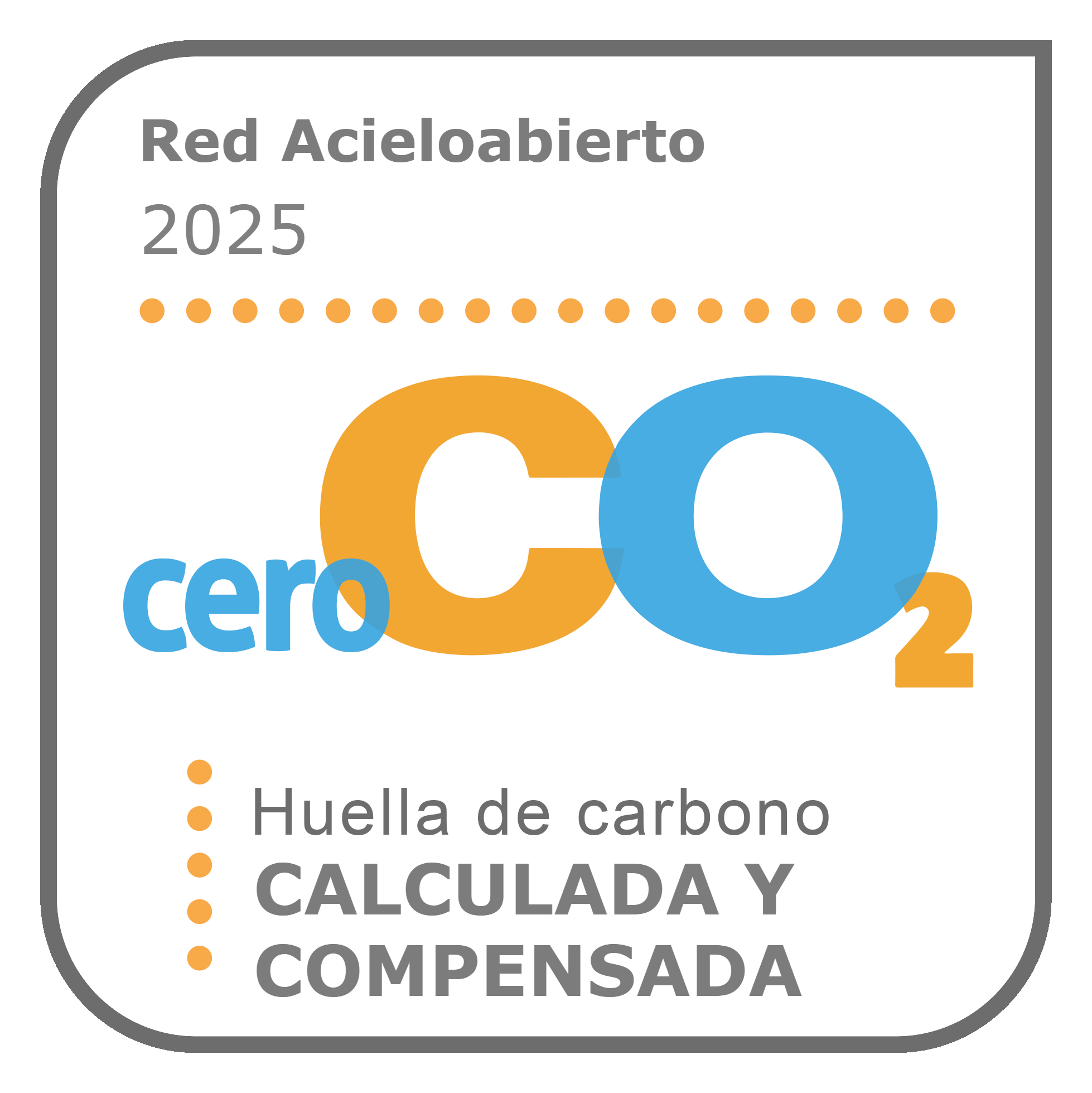 Red Acieloabierto, consciente de su responsabilidad con y hacia el medioambiente, calcula la huella de carbono de su actividad de modo voluntario como paso hacia una política activa y coherente en relación al cambio climático y al medio ambiente.