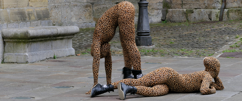 Doppel-Leo, es una cápsula coreográfica que camufla y funde dos cuerpos en un ir y venir de lo escultórico a la movimiento.