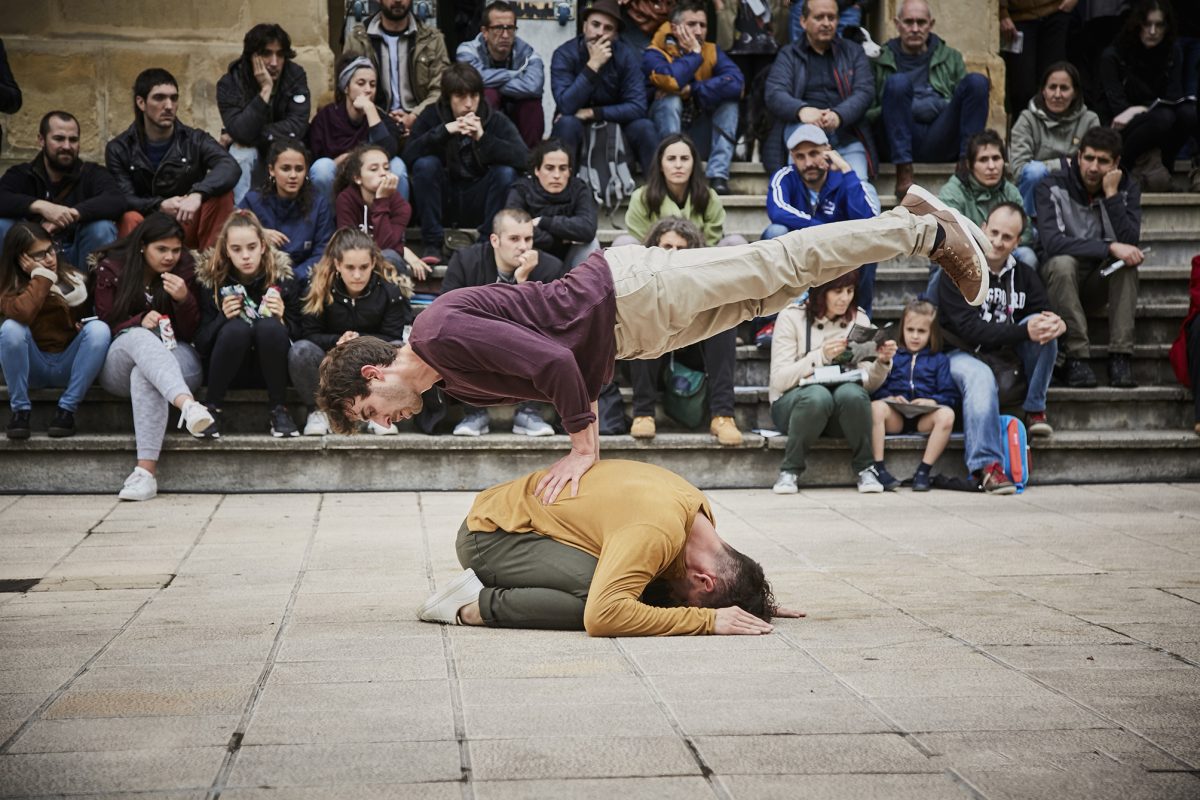 Larrua es una pieza coreográfica que mezcla dos estilos de danza, danza contemporánea y break dance, con el objetivo de trazar una misma línea de trabajo y estilo para crear similitudes en la fisicalidad y la emoción. La piel como transmisor de emociones, el instinto más animal y ligeramente disimulado por una capa inicial de piel. Las temperaturas, las texturas, el reconocimiento a través del contacto físico, tocando, rasgando, presionando, acariciando…